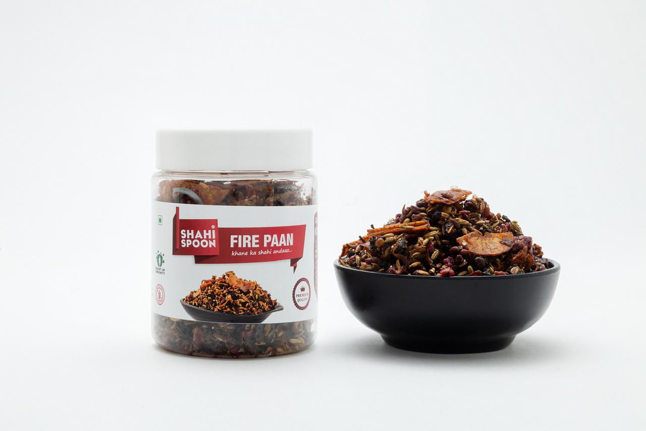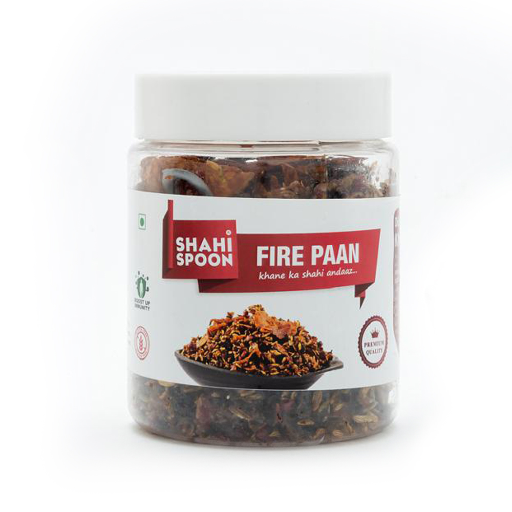 Fire Paan is a contemporary twist on the traditional Indian paan with Digestive Aid, Oral Health and Respiratory Relief benefits packed with ingredients like Betel nuts, Confectionery melon seeds, Fennel seeds, Dry Dates and Honey permitted flavour.