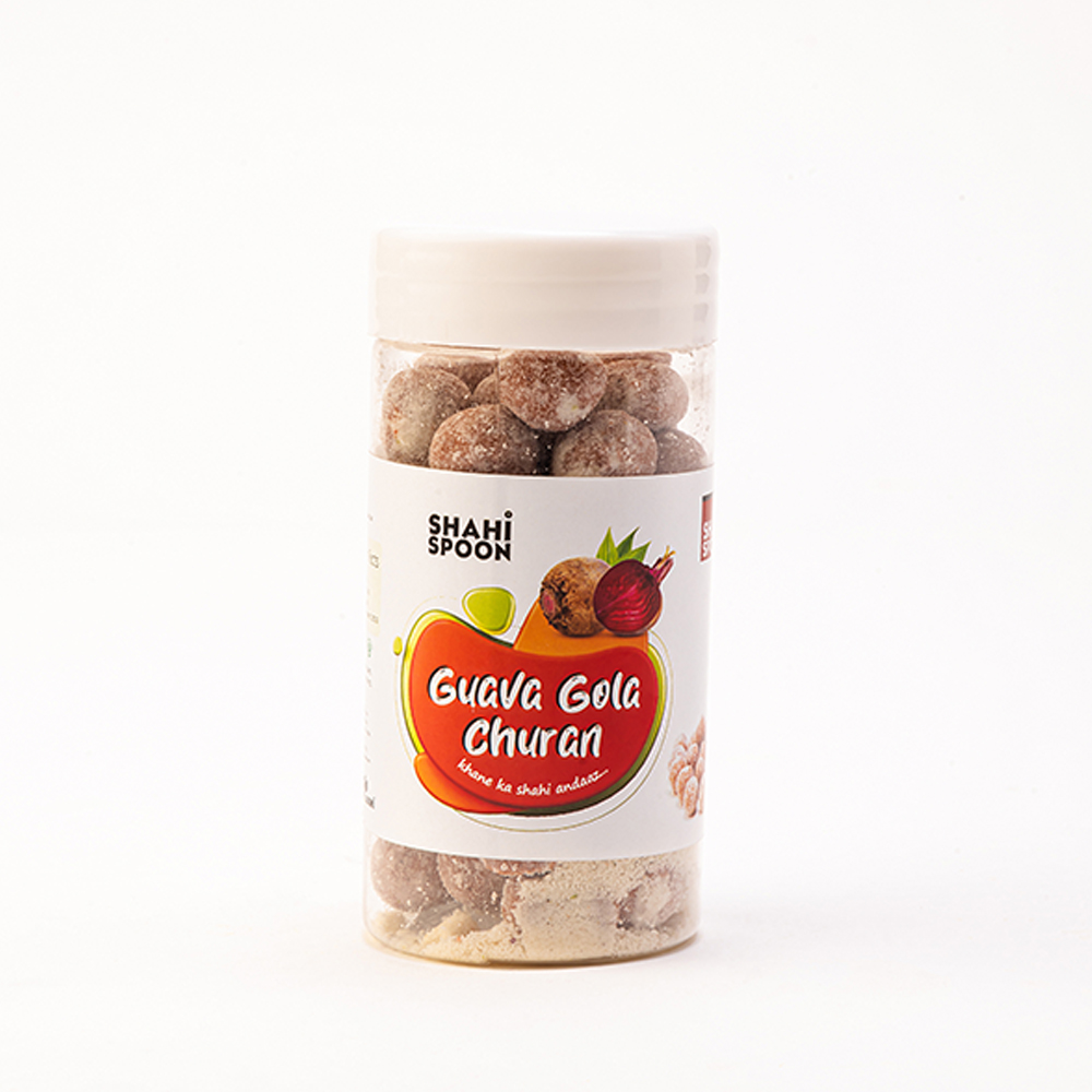 Guava Gola Churan is a flavorful Indian digestive seasoning made specifically to enhance the taste of guava while also aiding digestion.