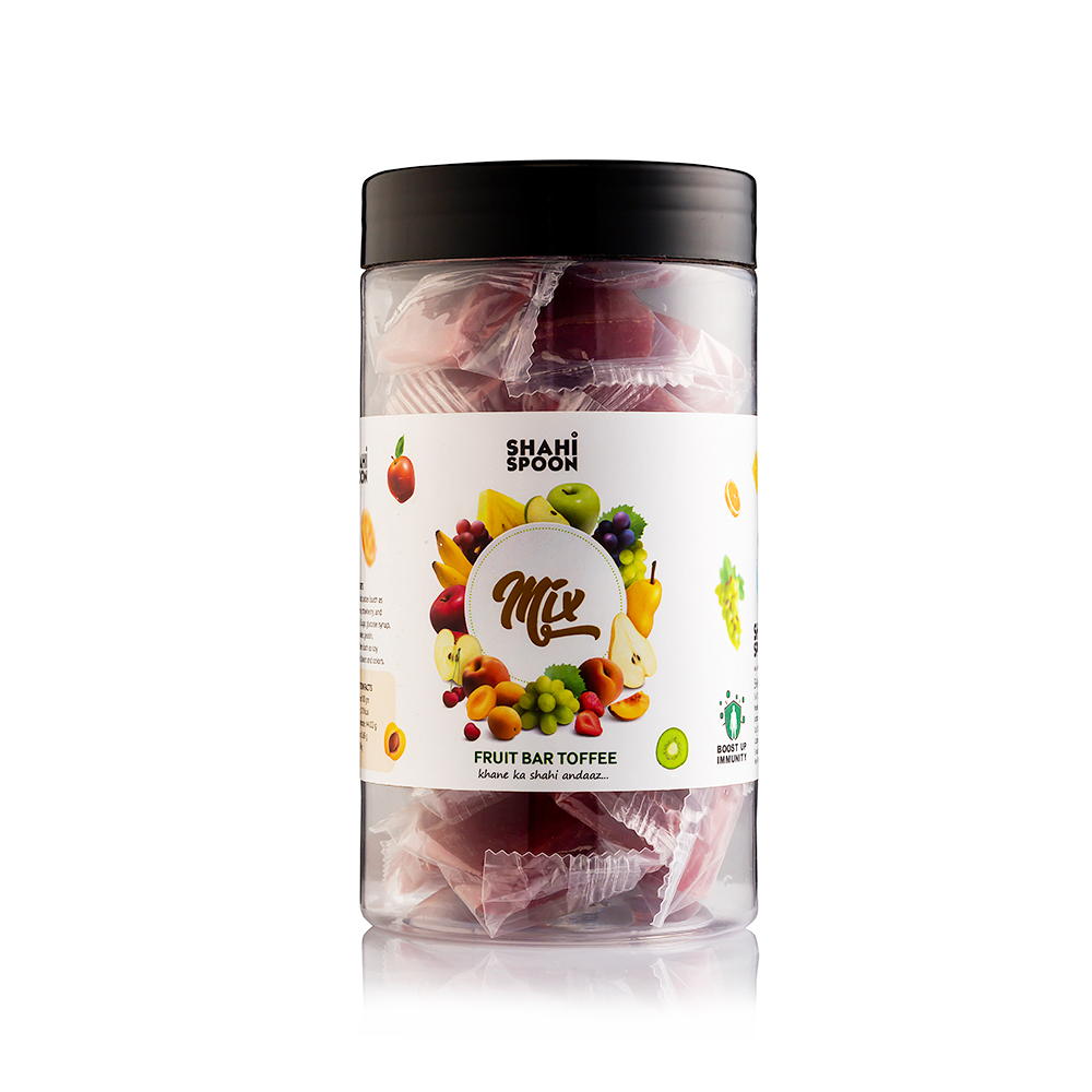A mix fruit bar is a soft and chewy snack made from a blend of different fruit pulps or purees, such as mango, apple, guava, or berries. It has a rich, fruity flavor that combines both sweetness and mild tanginess, offering a balanced and refreshing taste.